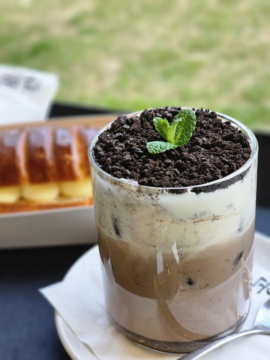 As you stroll up the beautifully manicured path leading to the café, you'll immediately be captivated by the expansive park-like surroundings. The spacious garden boasts lush greenery, colorful flowers, and abundant seating areas, providing guests with a picturesque view and a relaxing atmosphere. The strategic layout of indoor and outdoor seating ensures that you can enjoy the scenery, whether you’re sipping your favorite drink or indulging in a sweet treat.